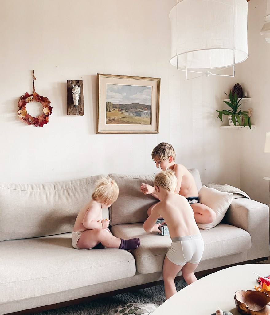 2019. För sen hux flux och vips så var det ju två ”stora” pojkar som kunde leka ihop? Minns att jag till den här bilden skrev något i stil med ”att kunna sitta i soffan och titta på när de underhåller sig själva är ALLT”. Och så känner jag fortfarande varje gång det sker. När övergången från behövande bebis (obs, förstår att mina barn kommer behöva mig lääänge och är väldigt fine med det) till att faktiskt interagera med ett syskon i en lek blir tydlig mitt framför ens ögon. Som jag njuter då!